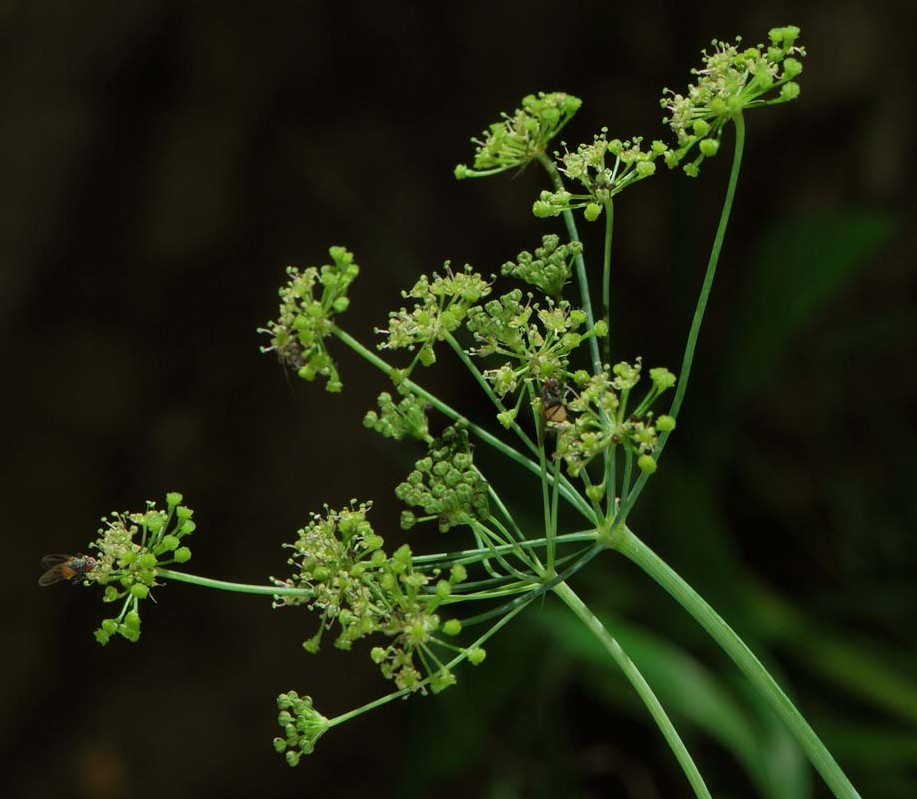 Stängel schwach bereift, Doldenstrahlen innen rau oder kurz behaart