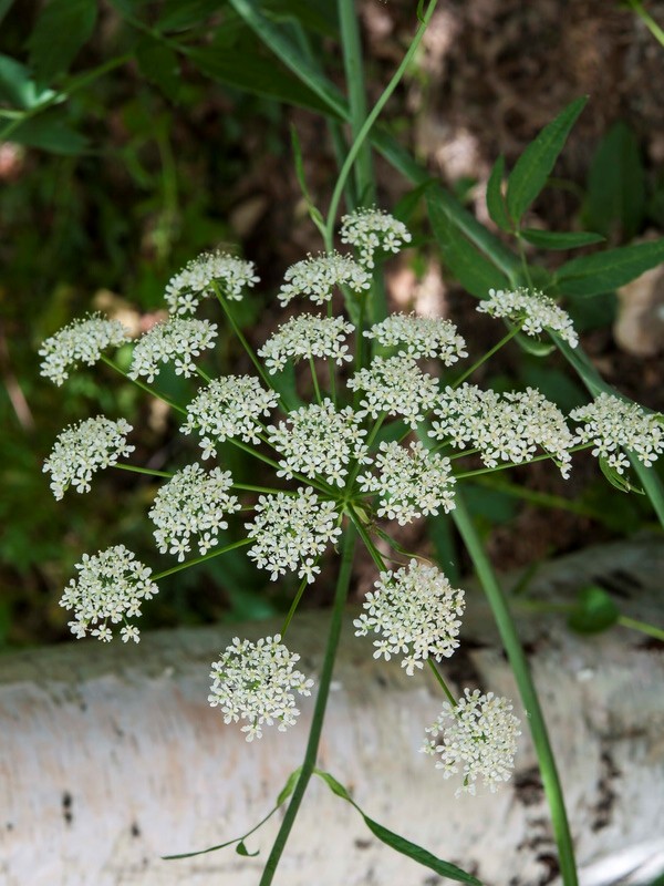 1 Dolden 30 - 50- strahlig, Blättchen groß, regelmäßig gezähnt, am Grund herzförmig