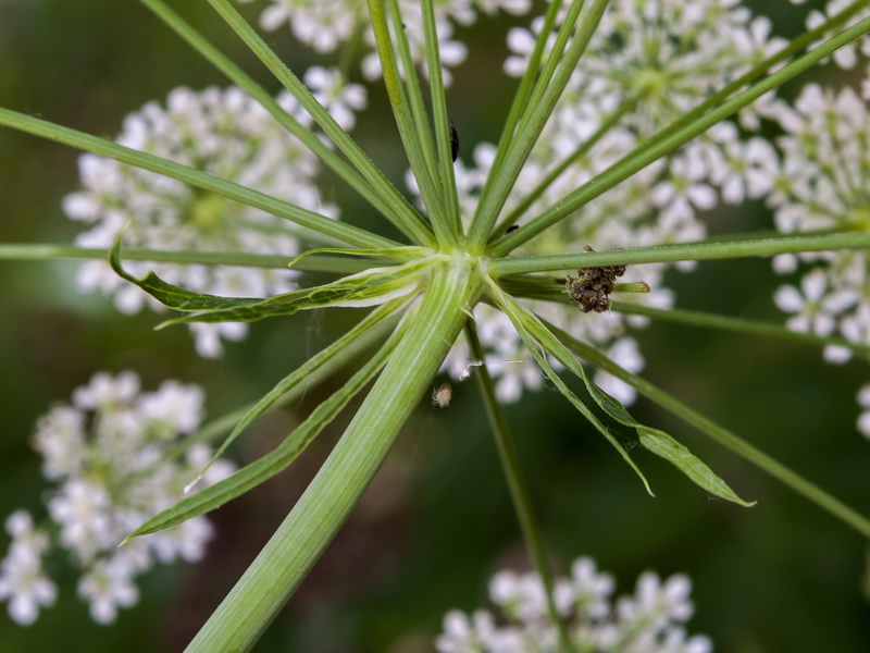 Dolde mit zahlreichen pfriemlichen 1 - 3 cm langen Hüllblättern