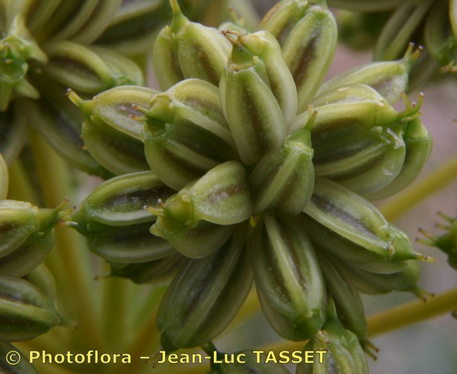Frucht oval, flach, bis 10 mm lang, mit breitkantigen Rücken- und schmalen Randrippen