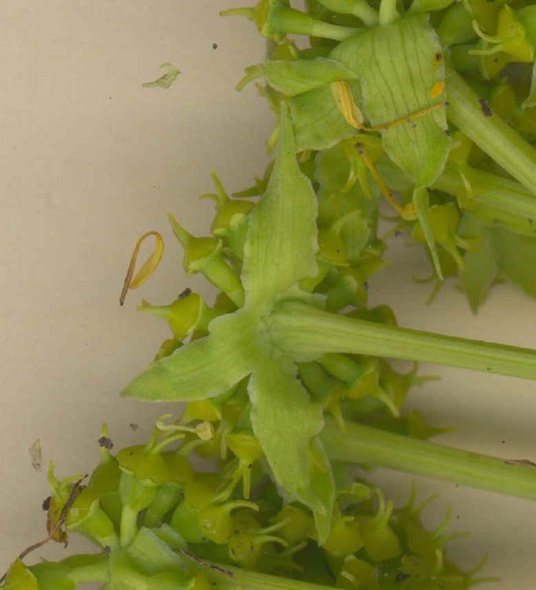 Blüten gelb, Dolden 12 – 40- strahlig, mit 6 - 9 Hüllblättern