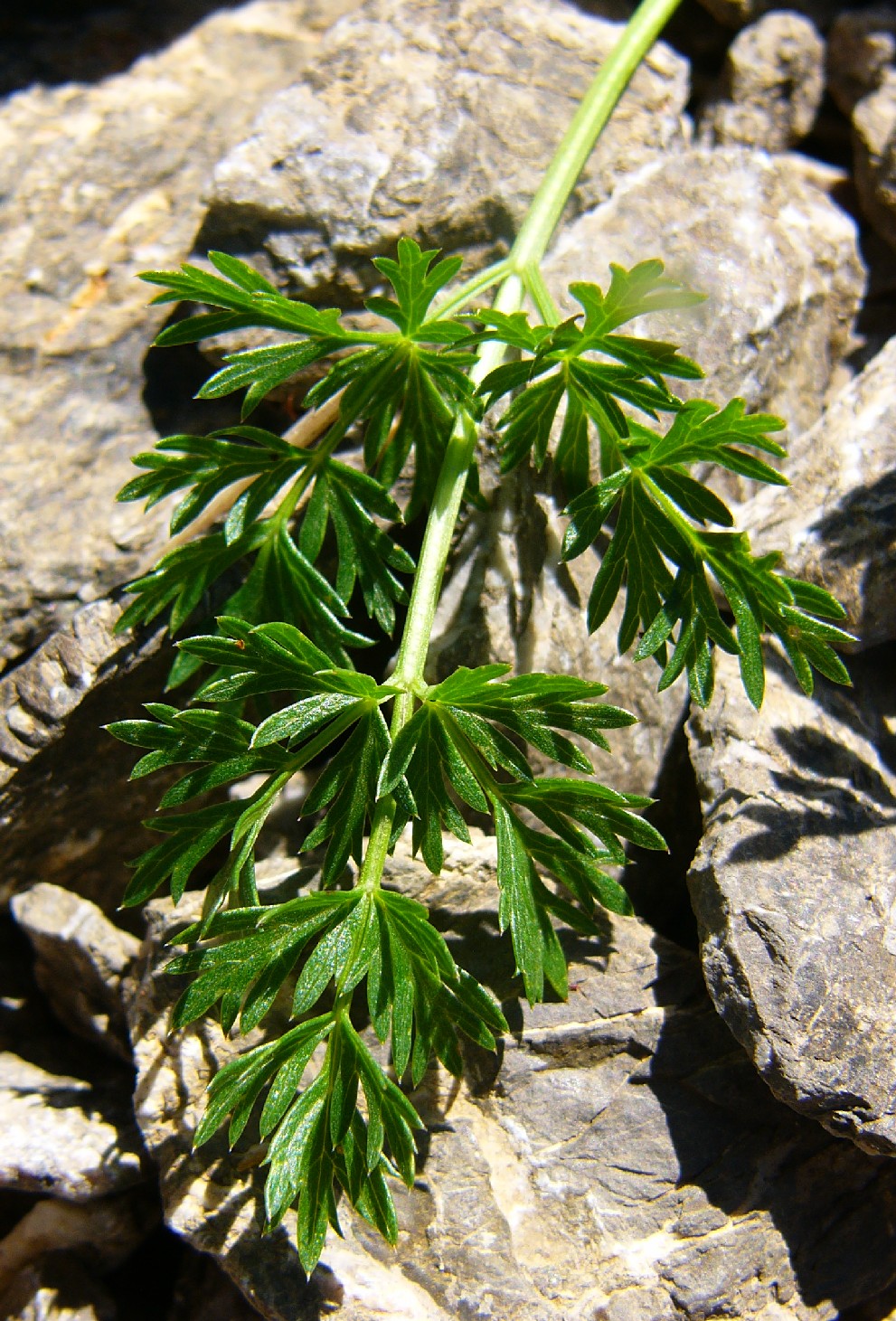 Grundblätter 2 - 3- fach gefiedert, 5 - 10 cm lang,