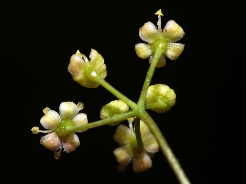 Kronblätter hellgelb, ca. 1 mm lang, nach innen gekrümmt