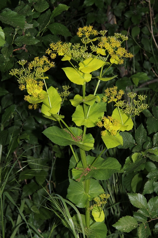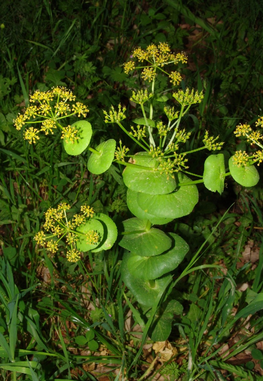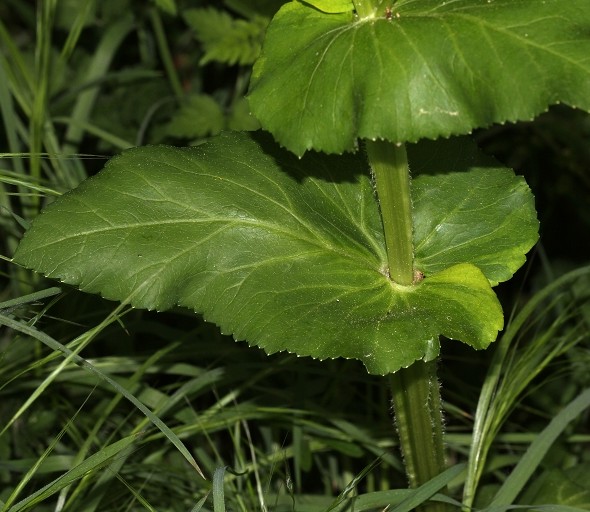 Stängel kantig, aber ungeflügelt Obere Stängelblätter kreisrund, stumpf, ganzrandig > 2