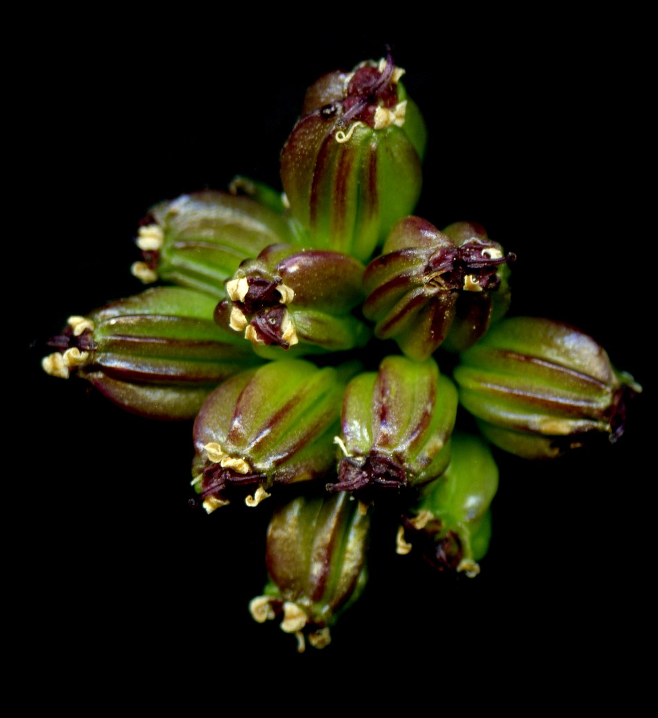 Kronblätter 1 mm, grünlichgelb, beim Abblühen weißlich werdend,