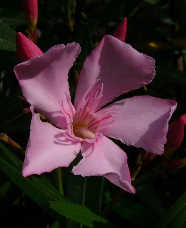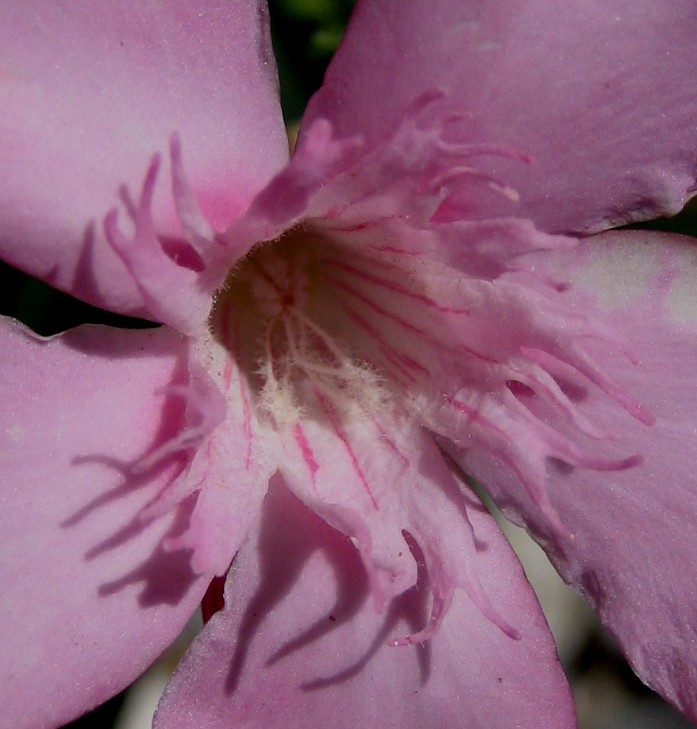 In der Mitte der Blüte befindet sich das weißliche Gynostegium (=