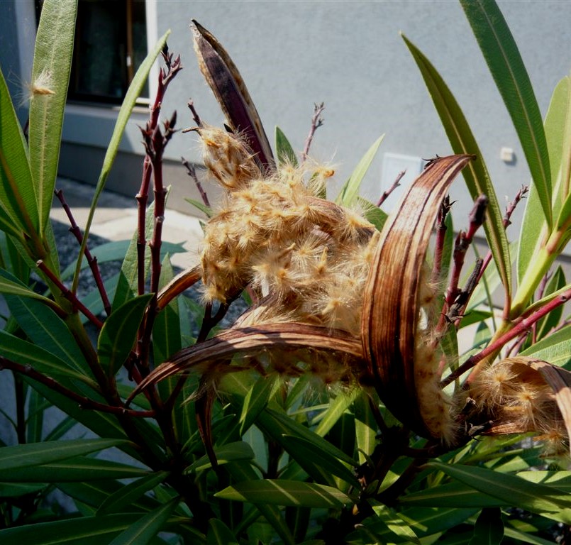 Zur Reife platzen die Balgfrüchte und entlassen Samen mit braunen langen Haaren