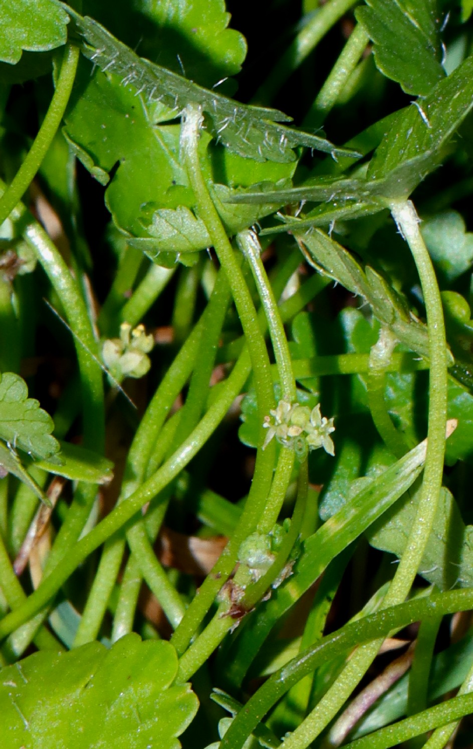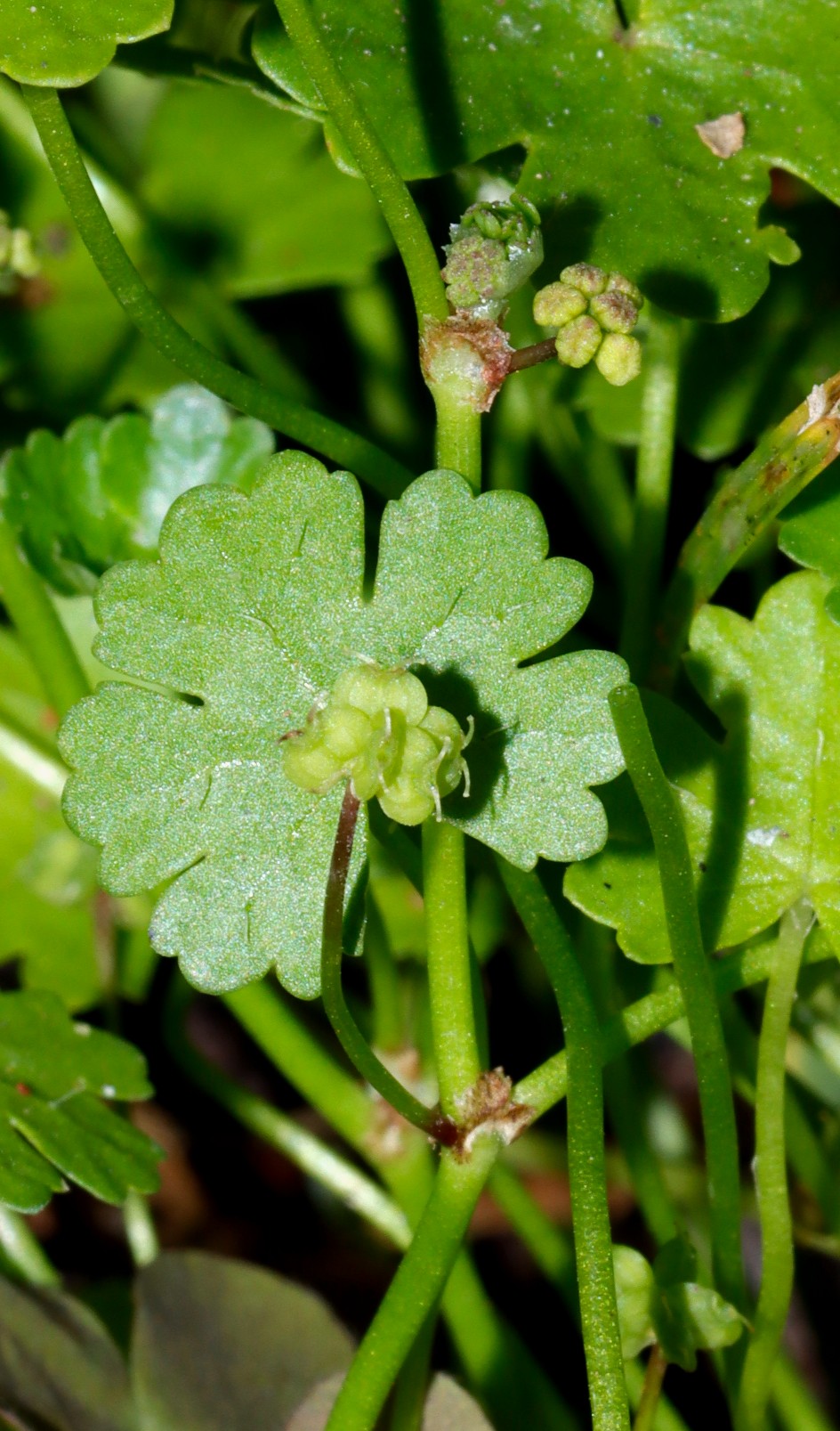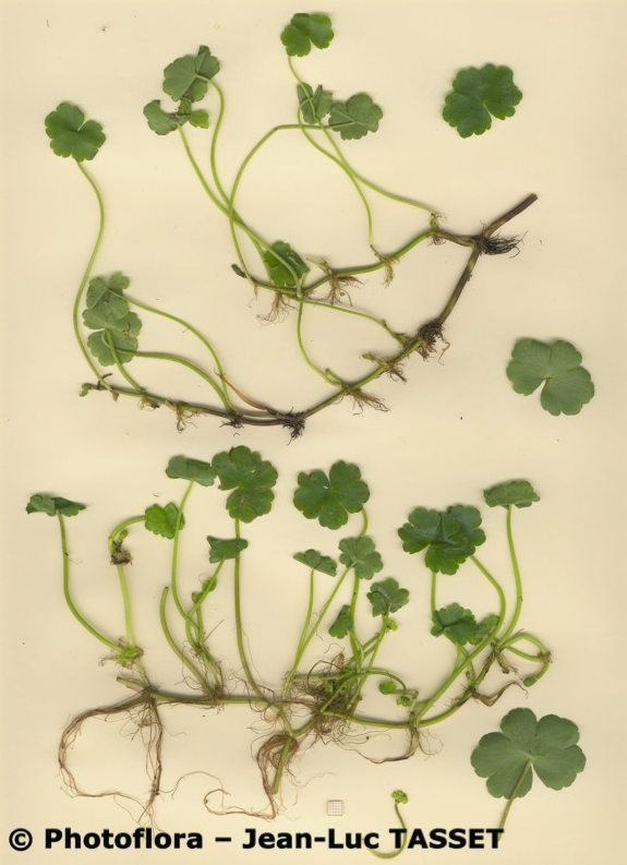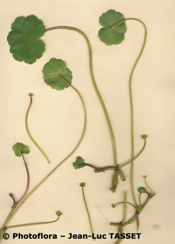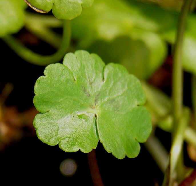 Hydrocotyle - Blattspreite tief gelappt, am Grund mit einem Einschnitt