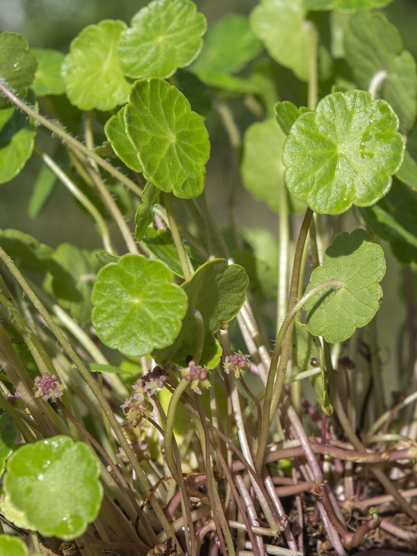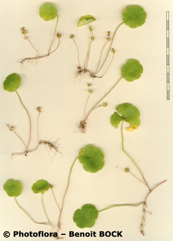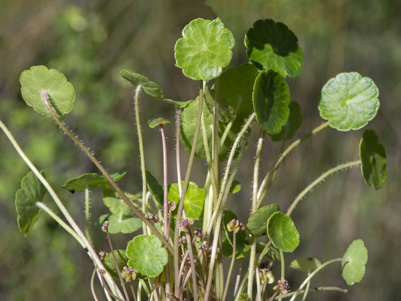 Hydrocotyle - Blüten und Früchte sitzend, Blattspreite schwach gelappt, am Grund ohne Einschnitt