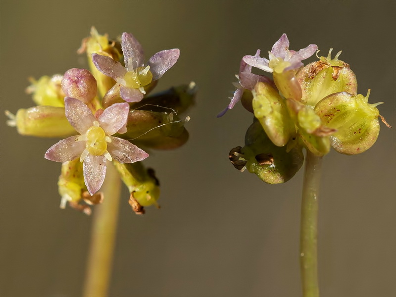 Blüten mit 5 ca. 0,8 mm langen weißen, rötlichen oder