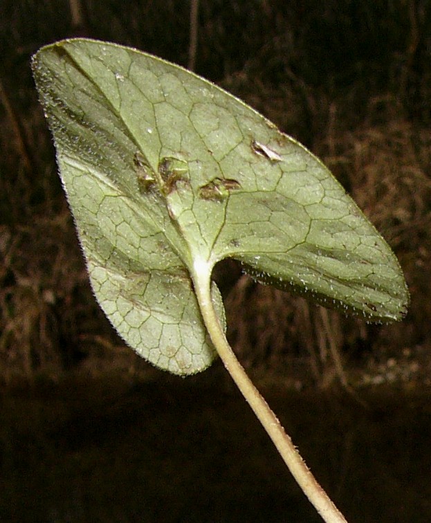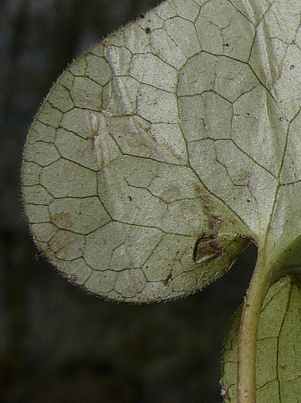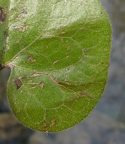 Blattunterseite glänzend, auf der Fläche kahl, am Rand spärlich behaart