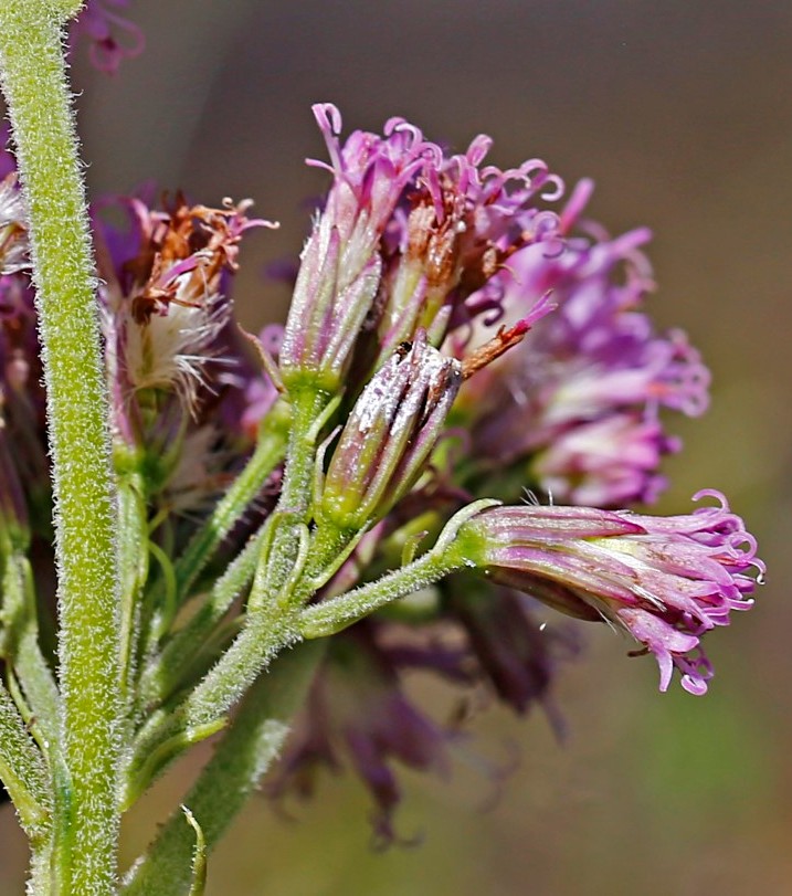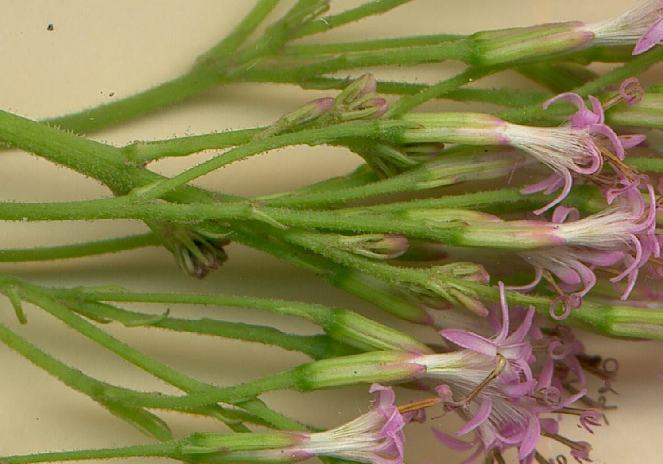 Köpfchenstiele +/- behaart, Köpfchen mit 8 - 12 Röhrenblüten, Hülle besteht aus +/- spitzen, zerstreut kraushaarigen, 6 - 7 mm langen Hüllblättern,Kronzipfel ca. 1/4 - 1/3 der Kronröhrenlänge, obere Stängelbätter gestielt, am Grund nicht geöhrt