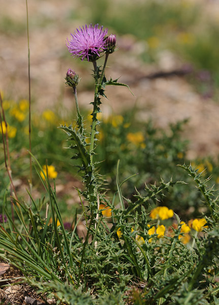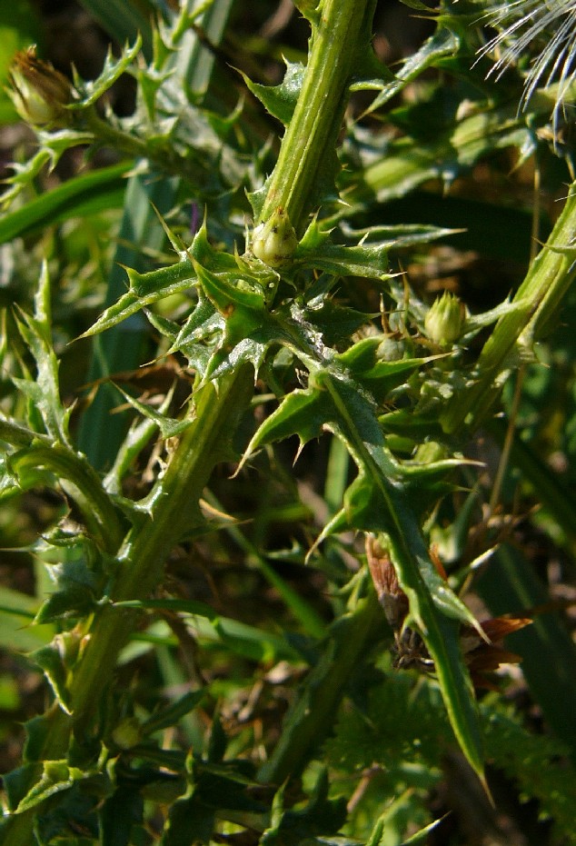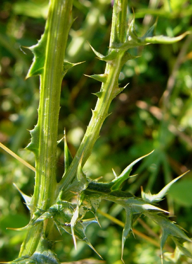 Stängel im oberen Teil ohne Blätter, im unteren Teil geflügelt mit 1 - 2,5 mm langen Dornen
