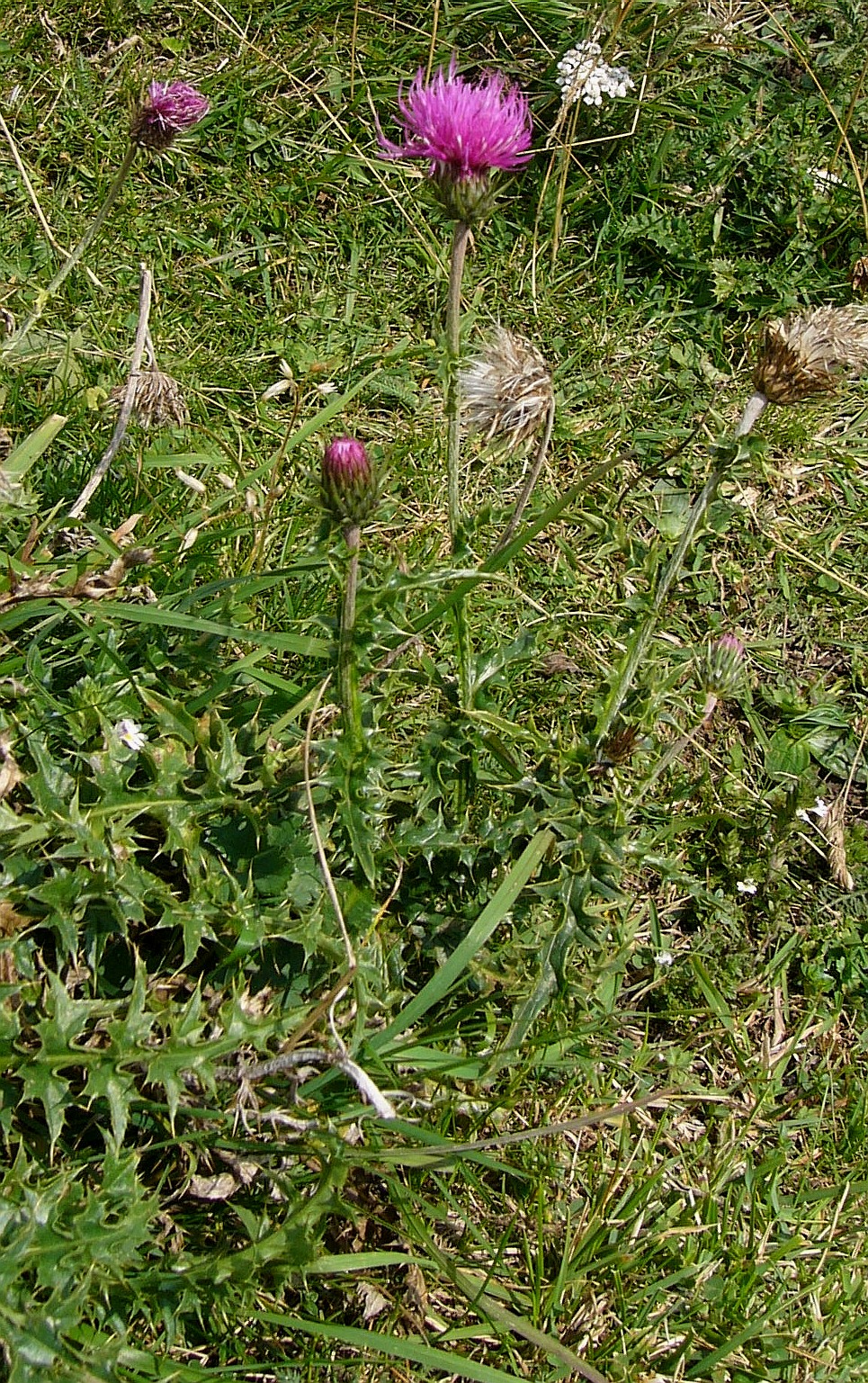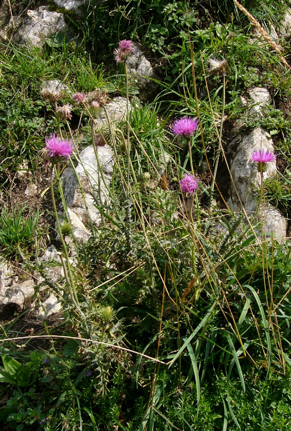 VII - VIII, Montane Weiden, Steinrasen Synonyme: English name: Nom francais: Nome italiano: Weltweite Verbreitung: Eventuell ein Bastard Carduus defloratus ssp carlinifolius x Carduus defloratus ssp defloratus (nach Flora Europaea). Einige Autoren z.B. Flora der Schweiz) sehen die Sippe nur als Varietät von Carduus defloratus ssp carlinifolius.