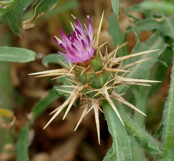 Hülle 12 - 17 mm lang, 5 - 8 mm im Durchmesser, 4 - 5- reihig, Anhängsel der mittleren Hüllblätter mit einem 12 - 33 mm langen Enddorn, Seitendornen 3 - 5 mm lang