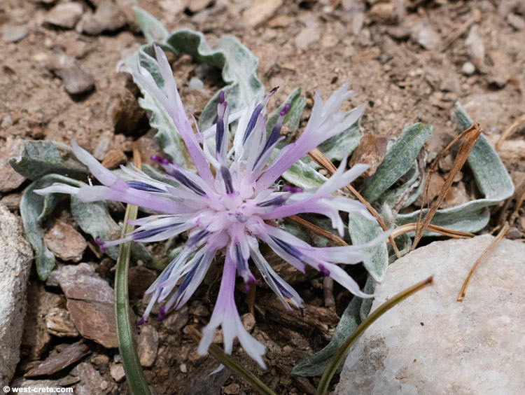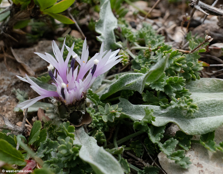 Verbreitung: Kreta Blüten weißlich oder hellrosa Rosettenblätter linealisch, ganzrandig oder leierförmig geteilt Fimbrien silbern > 2