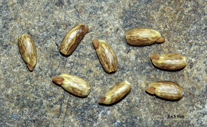 Frucht ca. 4,5 mm lang, marmoriert, schwach seidig