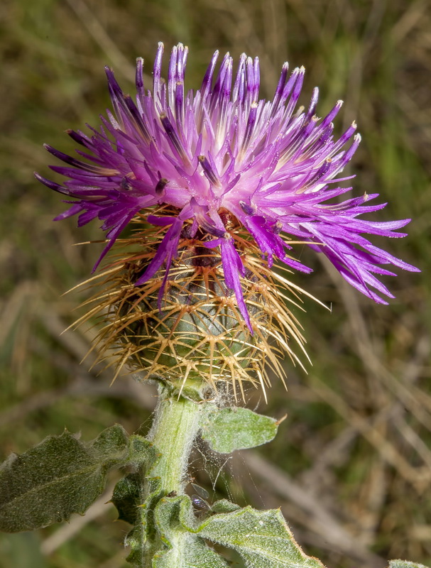 Hüllblätter mit 5 - 9 Dornen, Enddorn 1 - 6 mm lang, etwa so lang wie die seitlichen