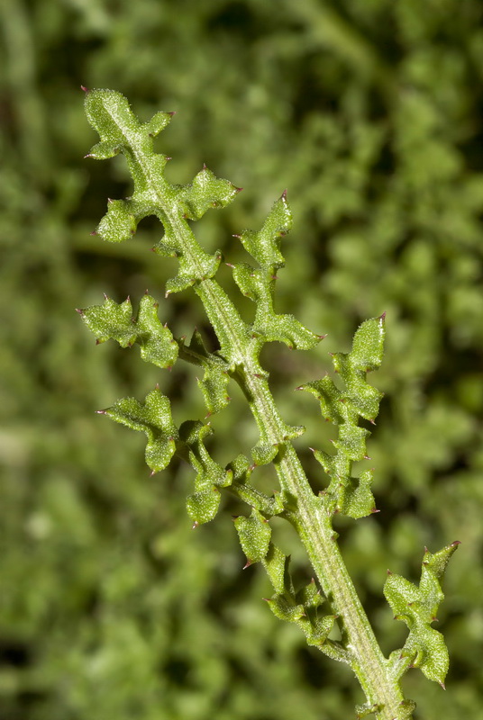 Untere Stängelblätter fiederschnittig, gezähnt, stachelspitzig, mit 2 - 3 Blattlappen jederseits