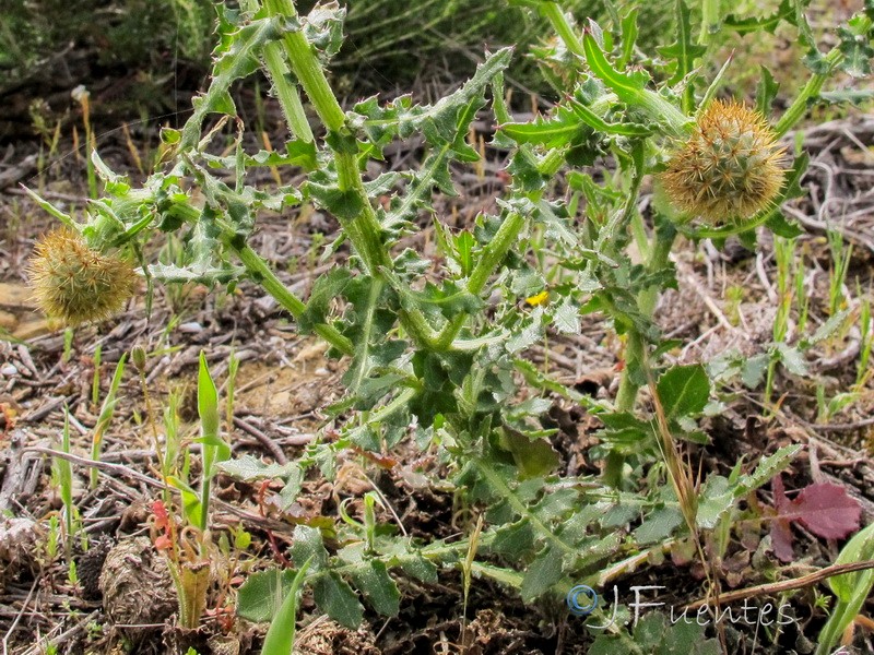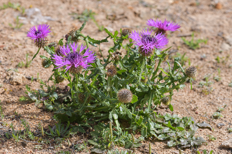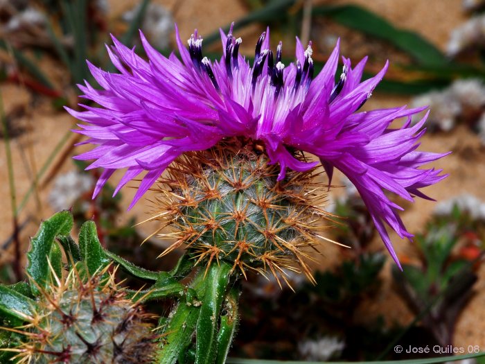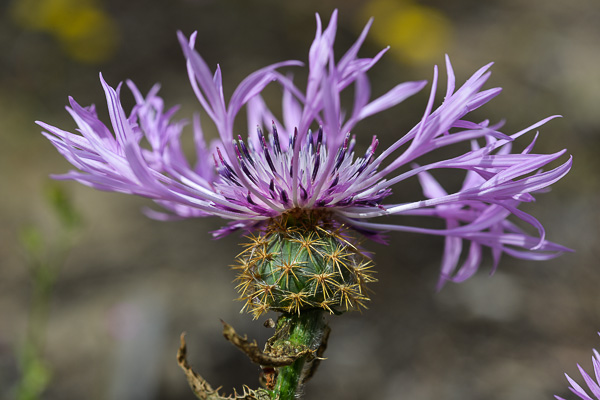 Anhängsel der mittleren Hüllblätter mit 7 - 22 Dornen, Dornen mehrreihig, in verschiedene Richtungen spreizend, Enddorn kaum länger als die seitlichen