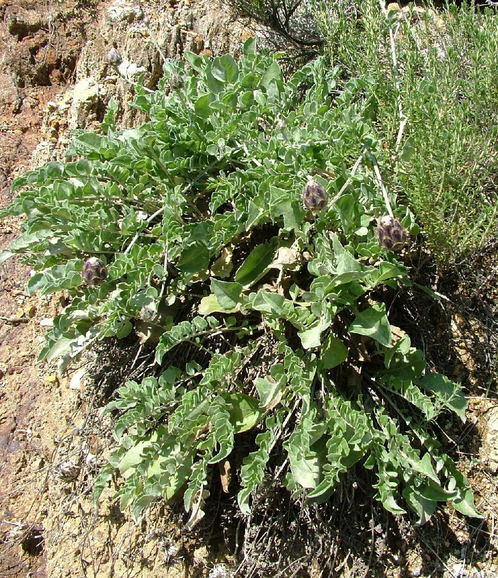 Mountains bei Korinth Stängel niederliegend, unverzweigt, kurz unterhalb des Köpfchen nach oben gebogen > Centaurea ebenoides
