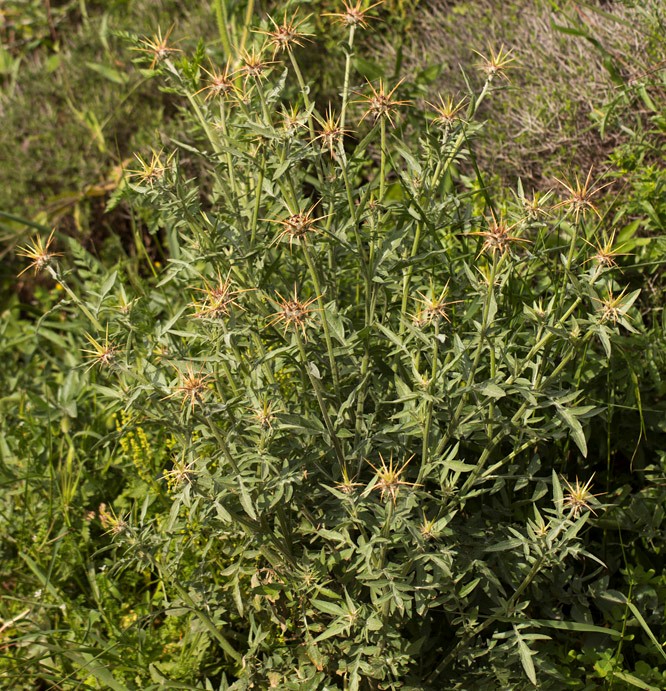 Pflanze 10 - 50 cm groß Köpfchen kugelig, 30 - 40 mm im Durchmesser, Enddorn kräftig, 3 - 5 cm lang