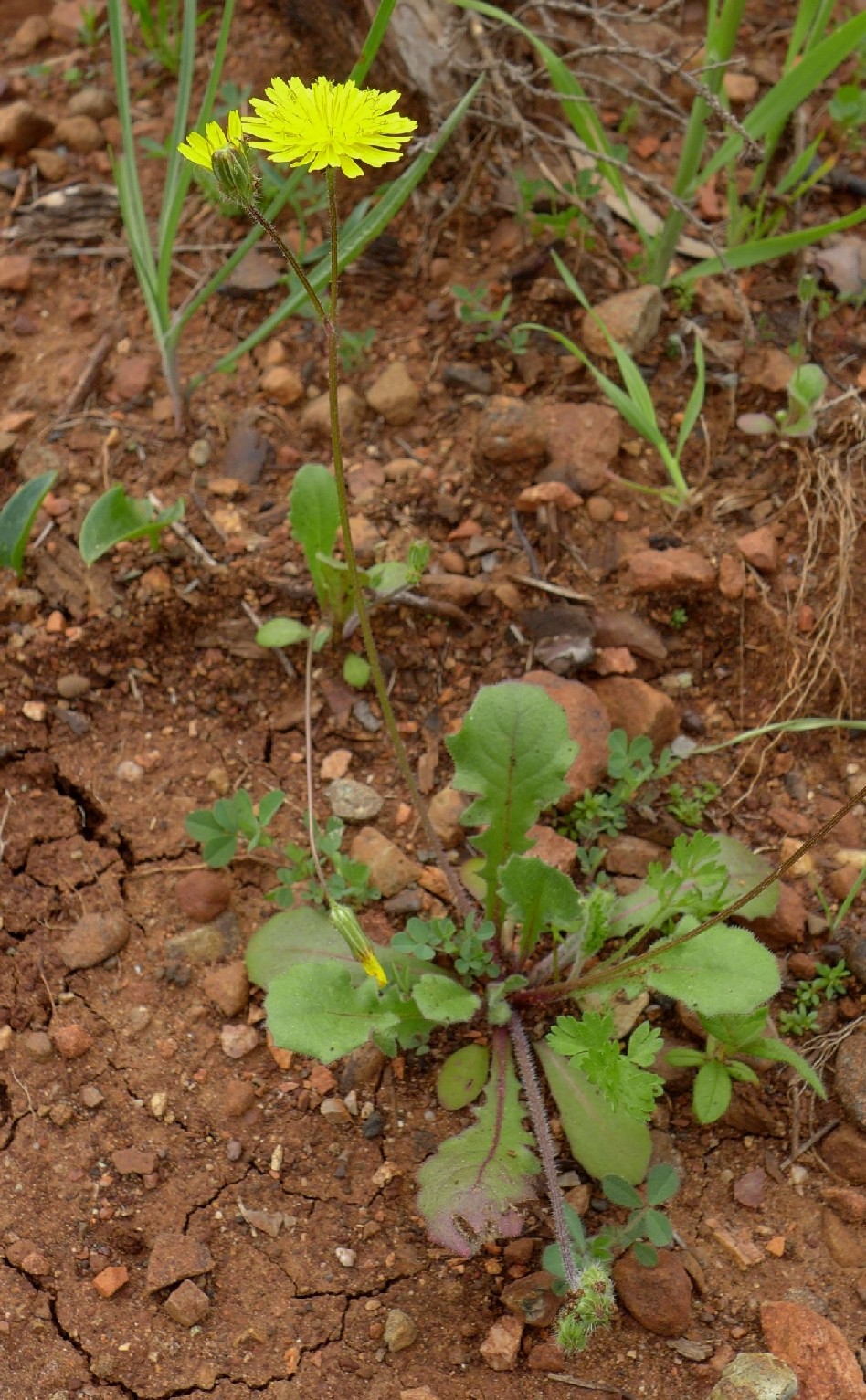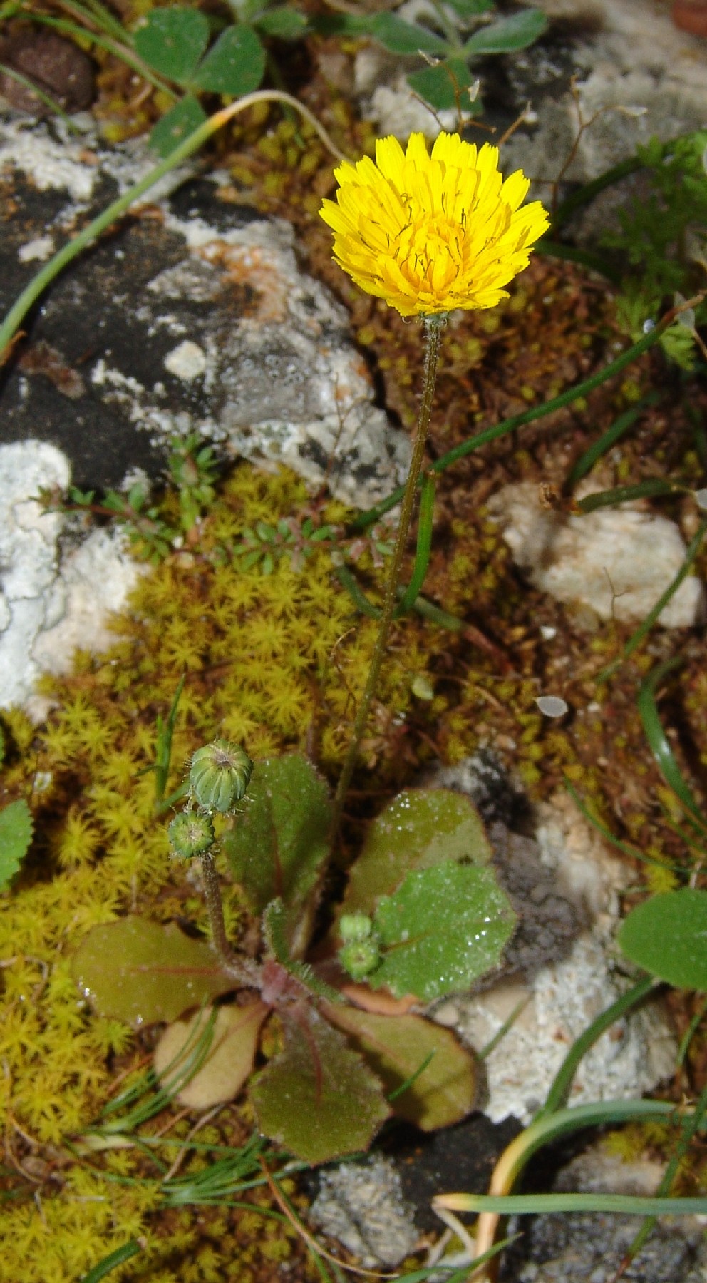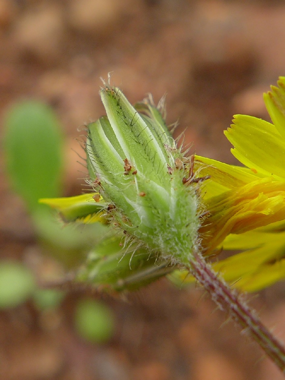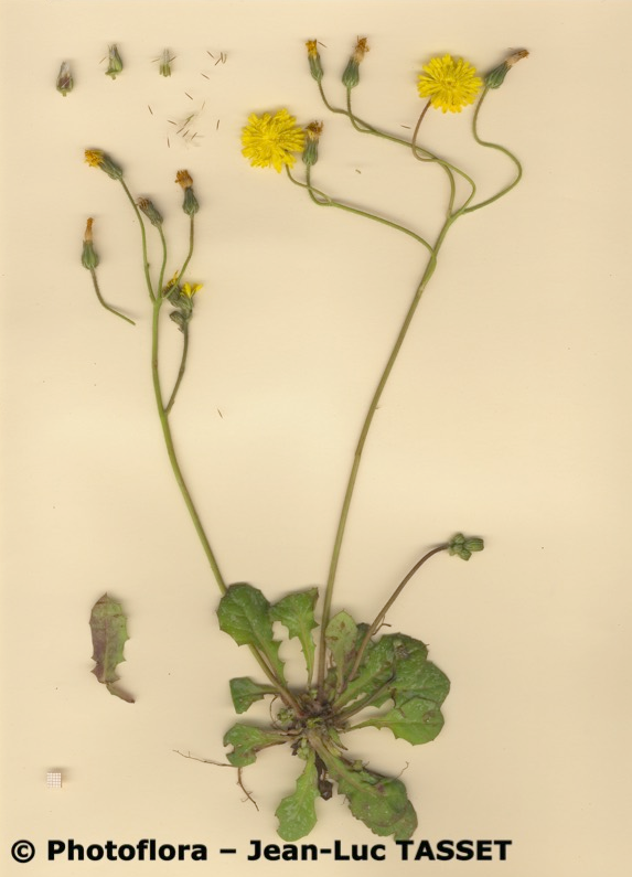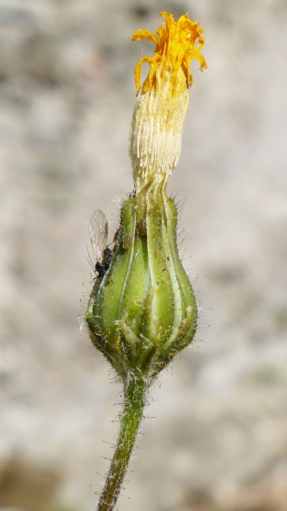 Crepis - Pflanze mit langem unbeblättertem Stängel, Blüten gelb, Grundblätter fiederteilig, Grundblätter fiederteilig, Hüllblätter breit hautrandig, borstig