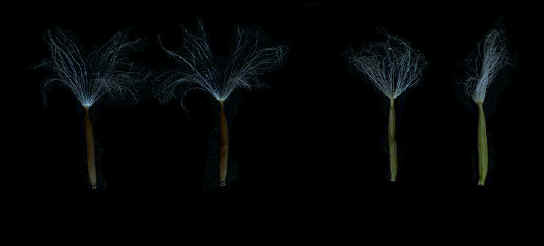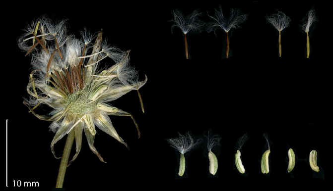 Innere Früchte schlank, mit 10 - 11 Rippen, nach oben verschmälert, mit weißem Pappus