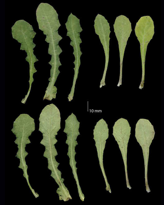 Grundblätter 1 - 20 cm lang, 1 - 4 cm breit, ganzrandig bis fiederteilig, behaart