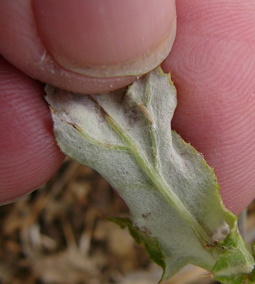 Pappushaare 2 - 4 mal so lang wie die gelblichen Früchte Blätter oberseits verkahlend, weiß gefleckt Blätter unterseits weißfilzig