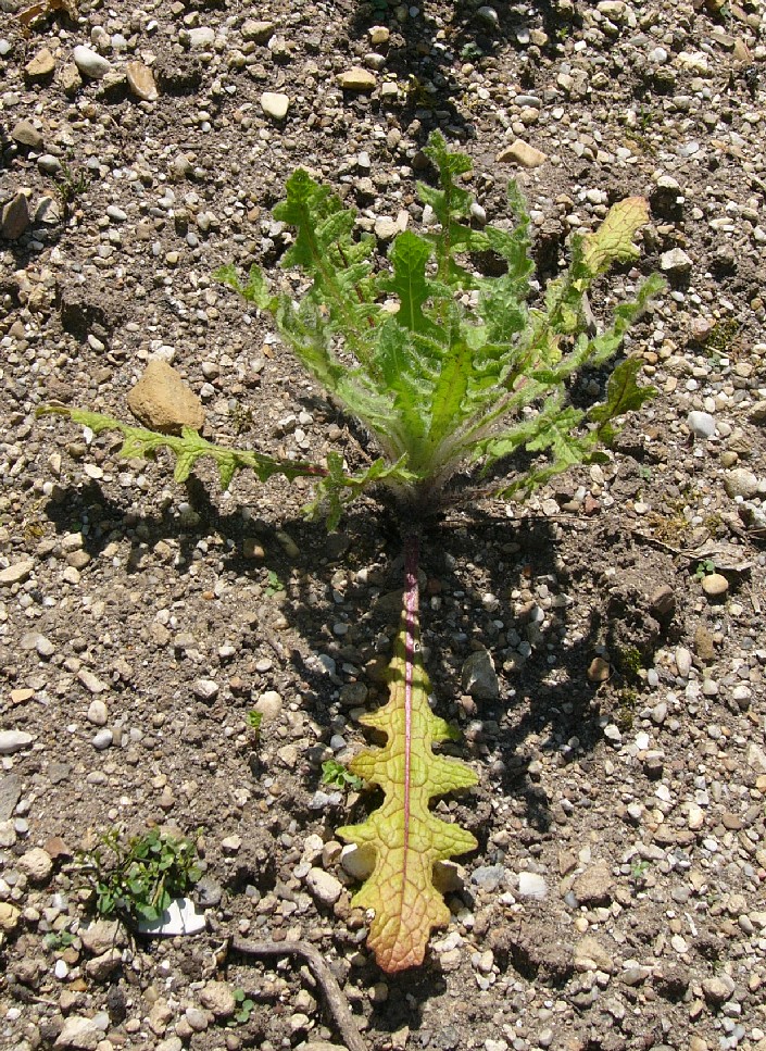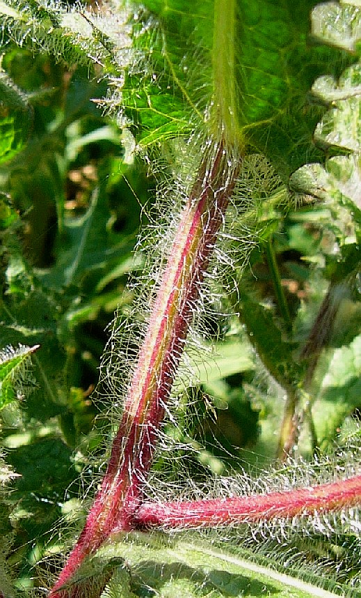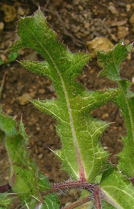 Stängel und Blätter unterseits wollig behaart Blätter fiederteilig bis fiederlappig, ledrig, dornig gezähnt