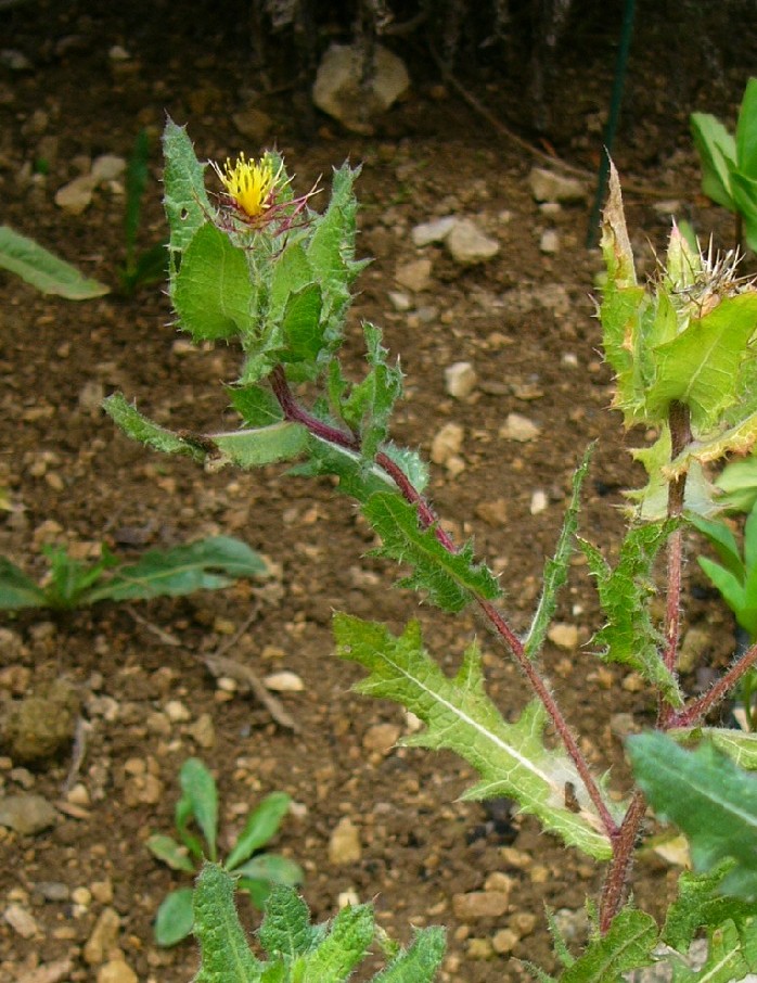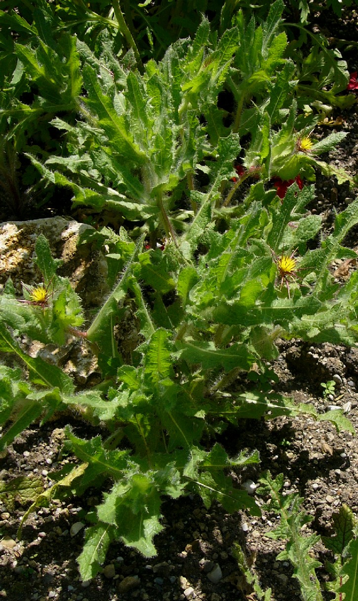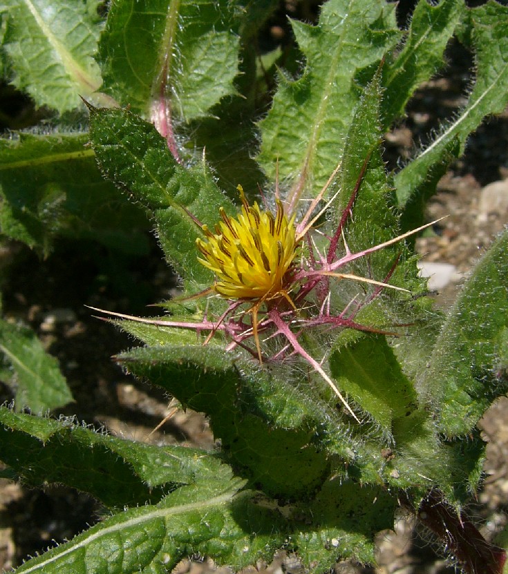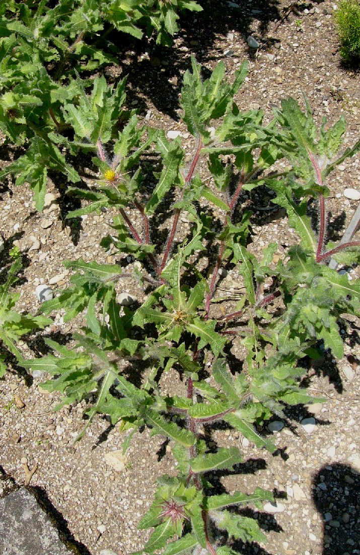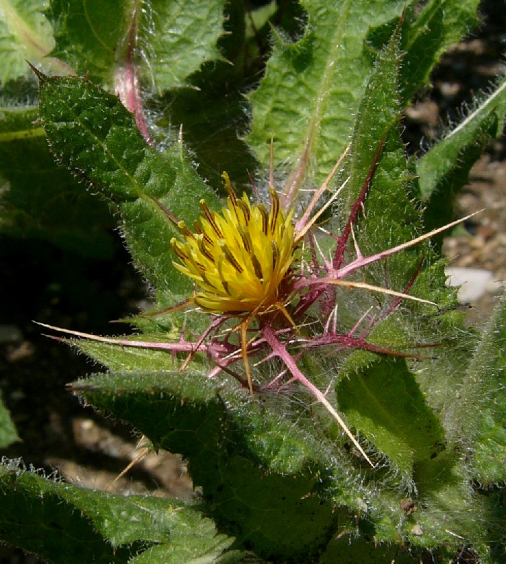 Pflanze 30 - 60 cm Köpfchen einzeln Blüten gelb Hüllblätter mit langem fiederteiligem Dorn Früchte mit Pappus aus gelben Haaren