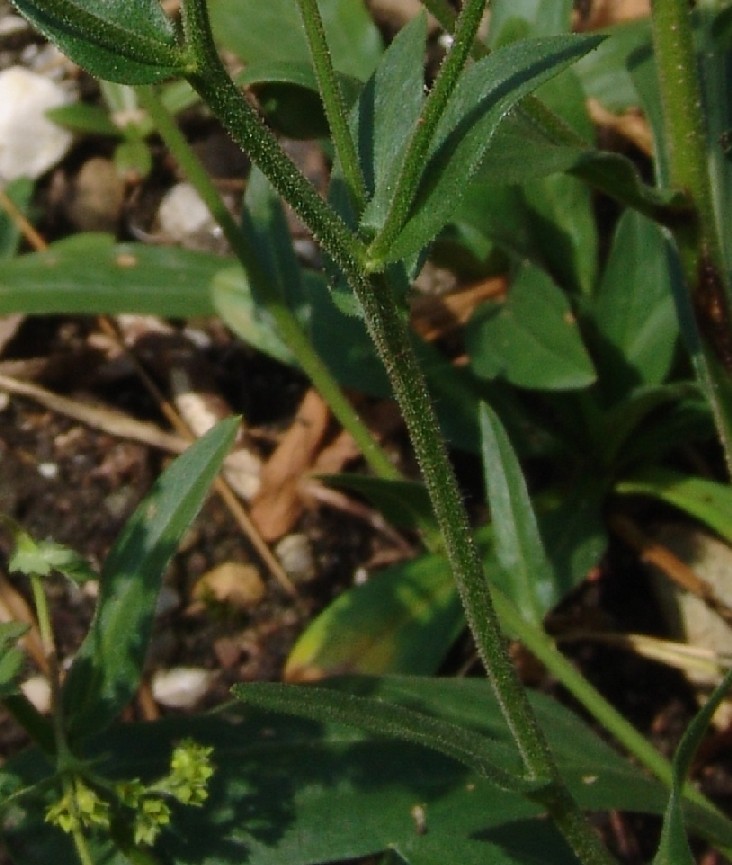 Stängel mit abstehenden drüsenlosen Haaren und mit sehr kurzen Drüsenhaaren, mit 4 - 17 Stängelblättern