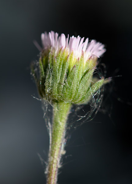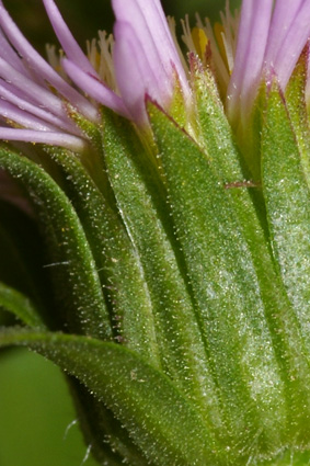 Hülle 2 - reihig, Hüllblätter fast gleich lang, 5 - 8 mm lang, mit langen drüsenlosen Haaren und kurzen Drüsenhaaren, Korbstiel mit kurzen Drüsenhaaren
