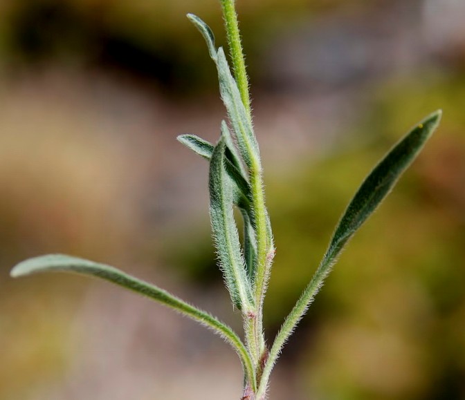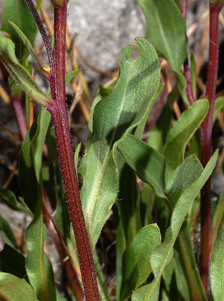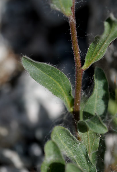 Stängel mit 1 -7 Stängelblättern, Stängel, Blätter und Hülle mit kurzen und langen drüsenlosen Haaren und kurzen Drüsenhaaren, Grundblätter rosettig, spatelförmig, immer stachelspitzig