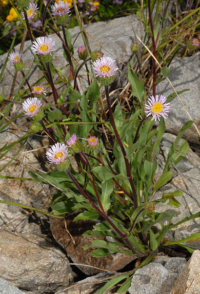 Berufkraut - ein- oder wenigköpfig, Zungenblüten lang, Köpfchen und Stängel drüsig, alpine Arten