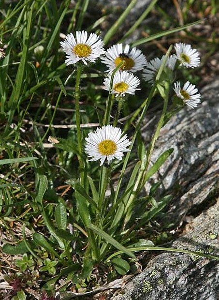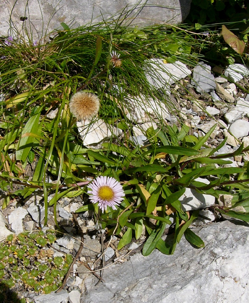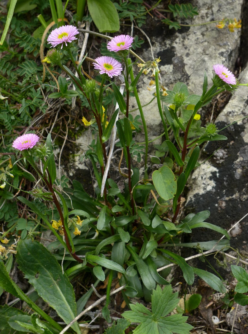 Verbreitung: - In der Publikation "FRAGMENTOS TAXONÓMICOS, COROLÓGICOS, NOMENCLATURALES Y FITOCENOLÓGICOS" (2011) von María del Mar F. ARJONA et al wird Erigeron Verguinii Sennen als Synonym von Erigeron alpinus angesehen.Unterschiede zwischen den 3 Typen von Blüten in einem Erigeronkörbchen: