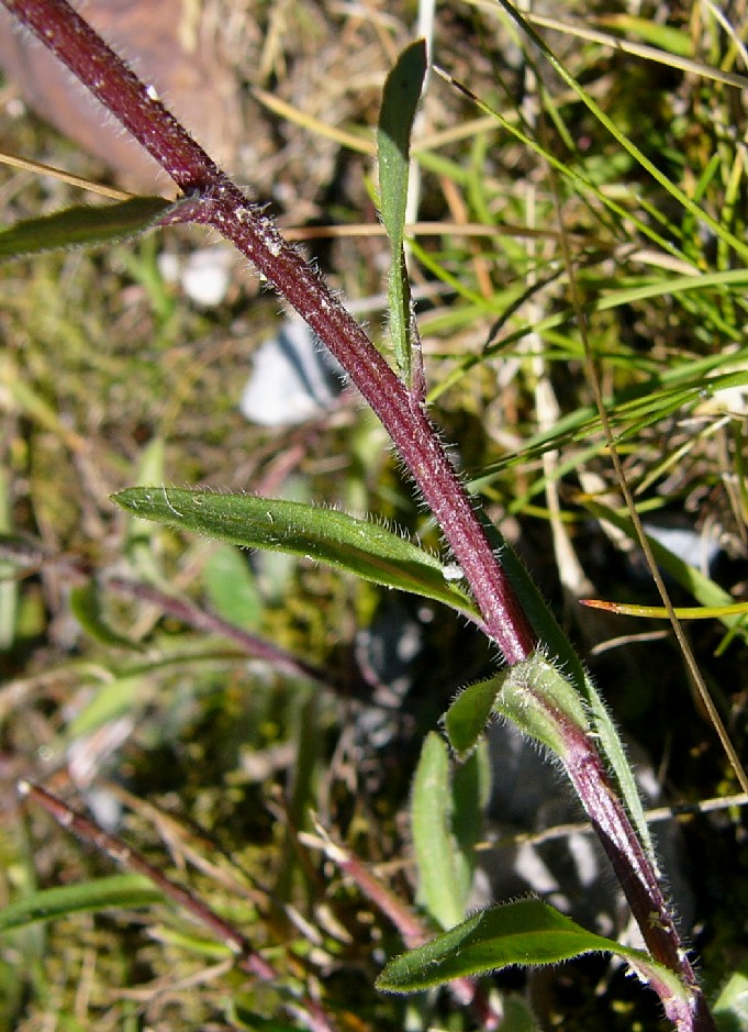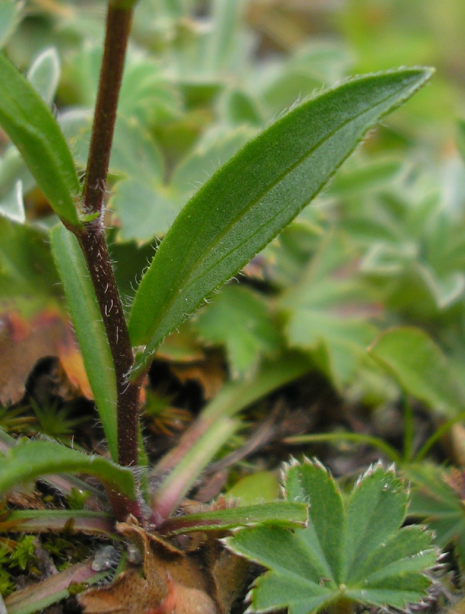 Stängelblätter 10 - 30 mm lang, oberseits kahl randlich bewimpert (manchmal nur am Grund), vorne +/- spitz