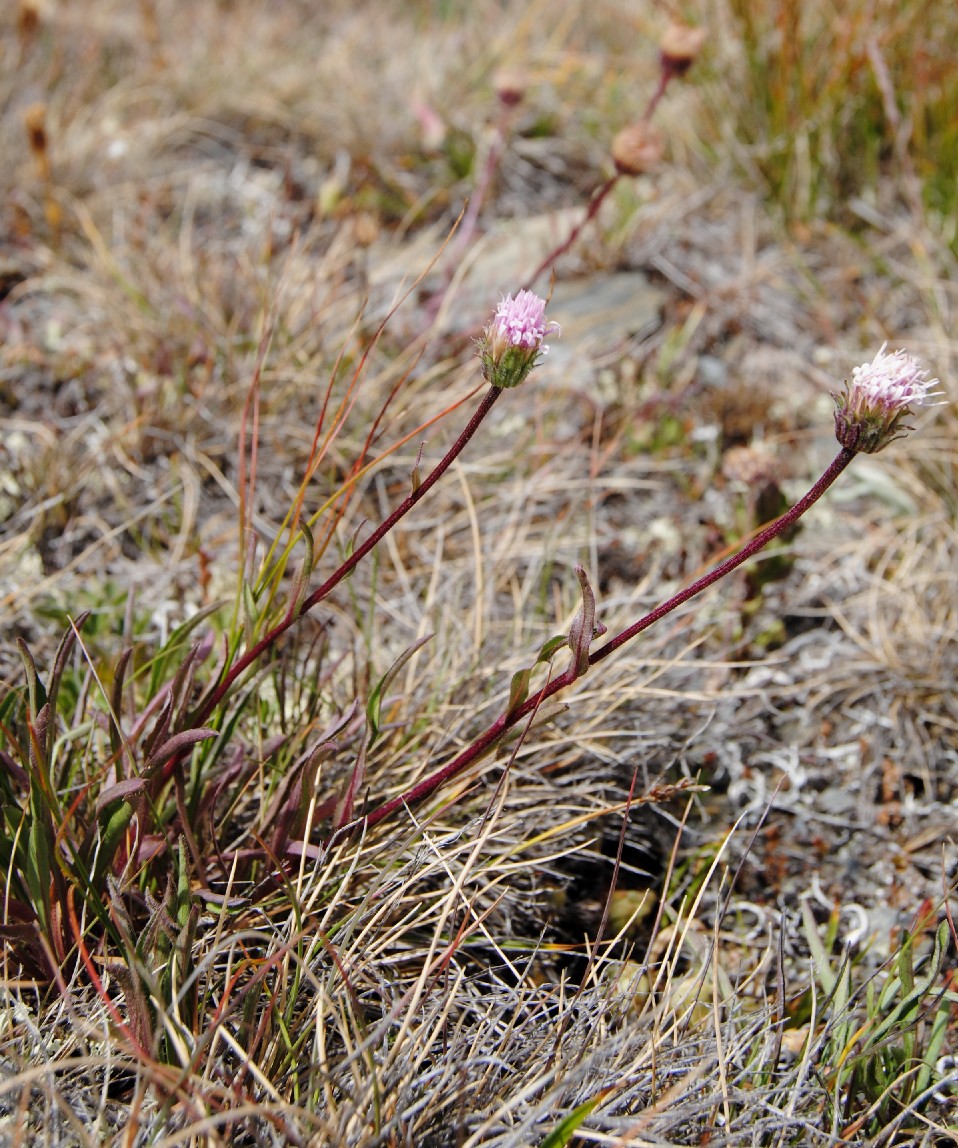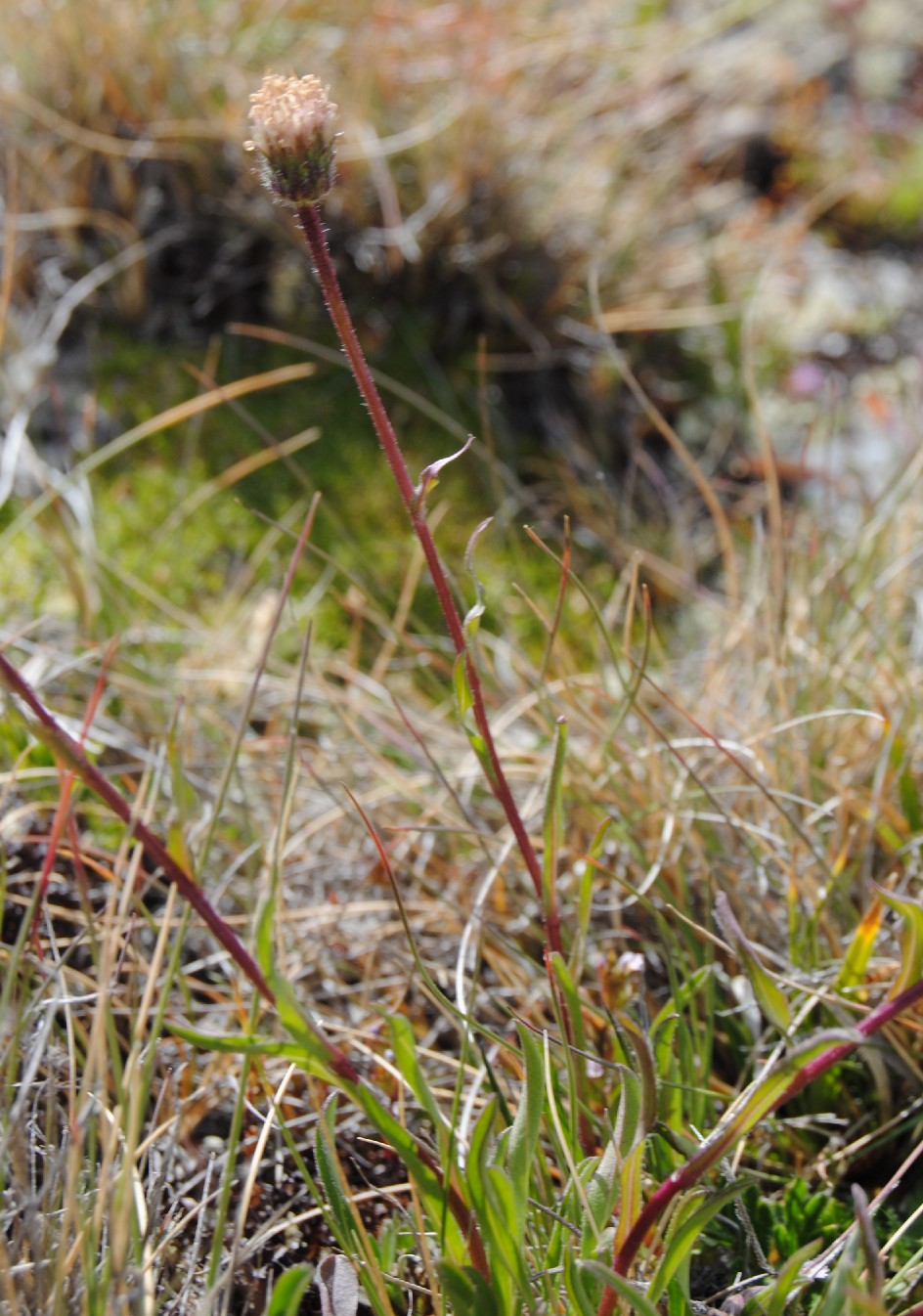 4 Köpfchen ohne Fadenblüten, Stängel mit 3 - 9 Blättern, Grundblätter dem Boden angedrückt