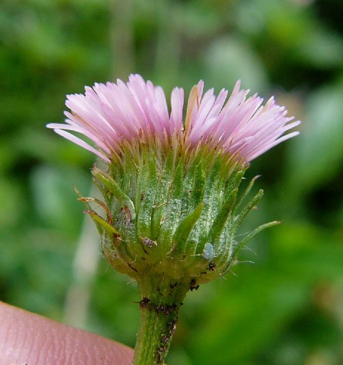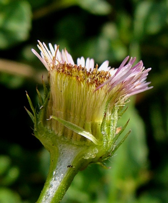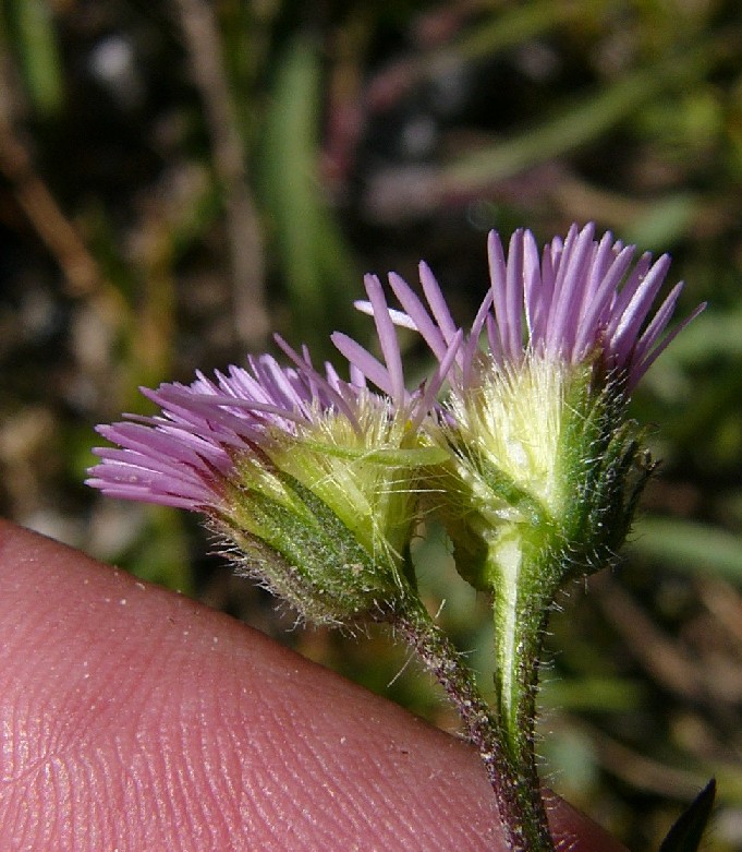 Köpfchen 16 - 23 mm im Durchmesser, mit oder ohne Fadenblüten, Zungenblüten 1 - 2- reihig, 7 - 10 mm lang, rosa, Röhrenblüten 4 - 5 mm lang, gelb, mit violetter Spitze, Fadenblüten fehlend oder nur wenige