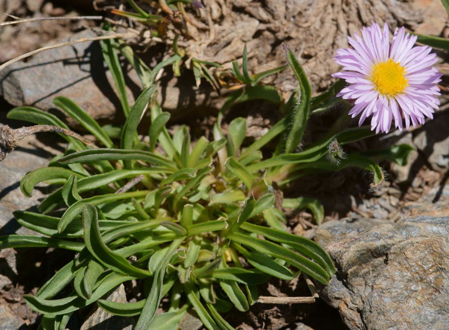 Sierra Nevada) Zungenblüten 5 - 7 mm lang Pflanze rasig wachsend, auch auf der Blattoberseite dicht behaart > 1