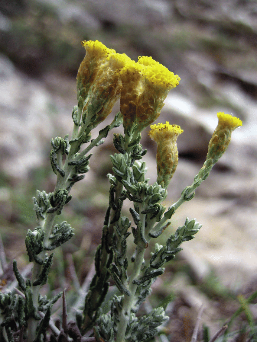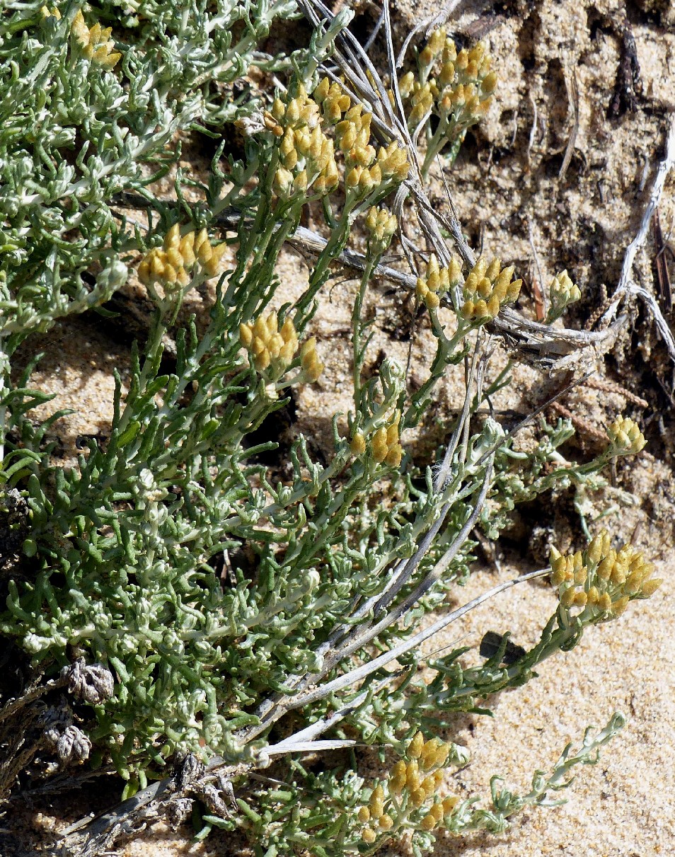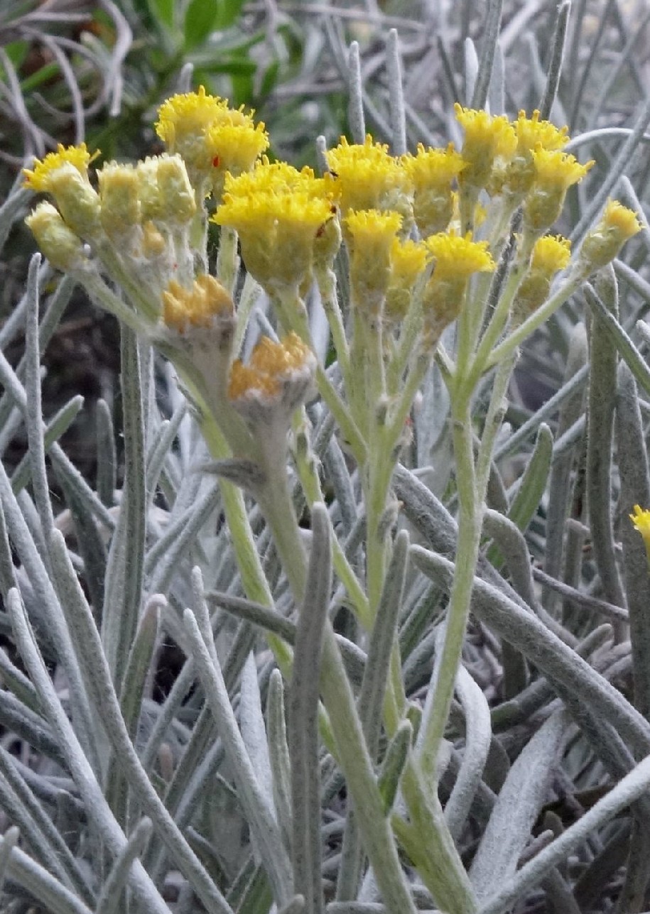 Helichrysum - Hülle zylindrisch, Hüllblätter gelb, Blätter linealisch, schmaler als 2 mm