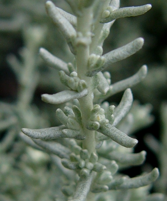 Stängel weißfilzig, am Grund verholzend, Blätter aufrecht oder abstehend