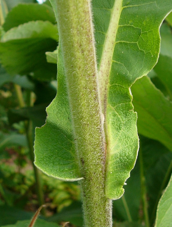 Stängel sehr kräftig, abstehend behaart, obere Blätter halbstängelumfassend