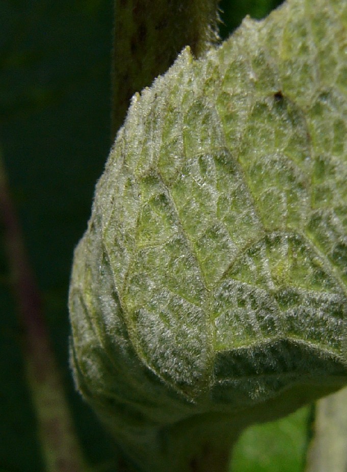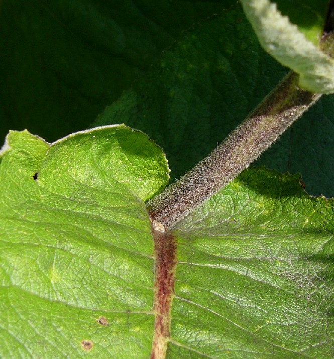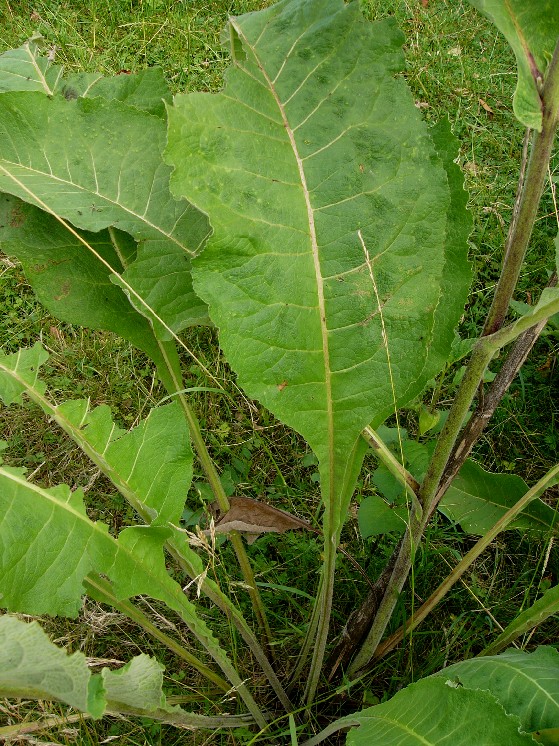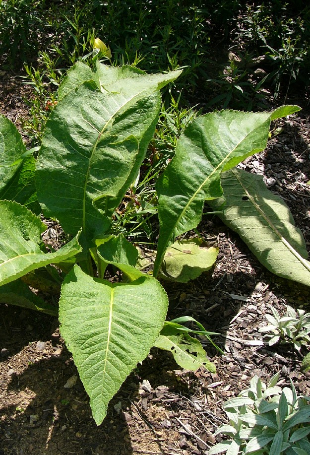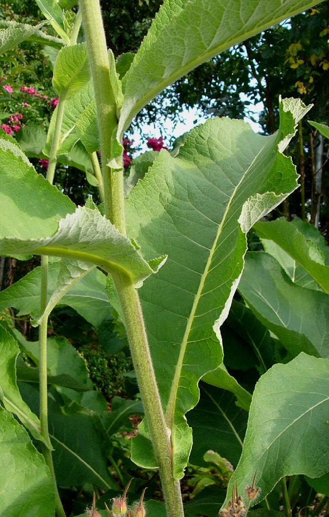 Blätter eiförmig bis breit lanzettlich, schwach gesägt (max. 25 cm breit)