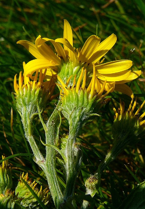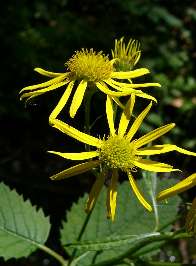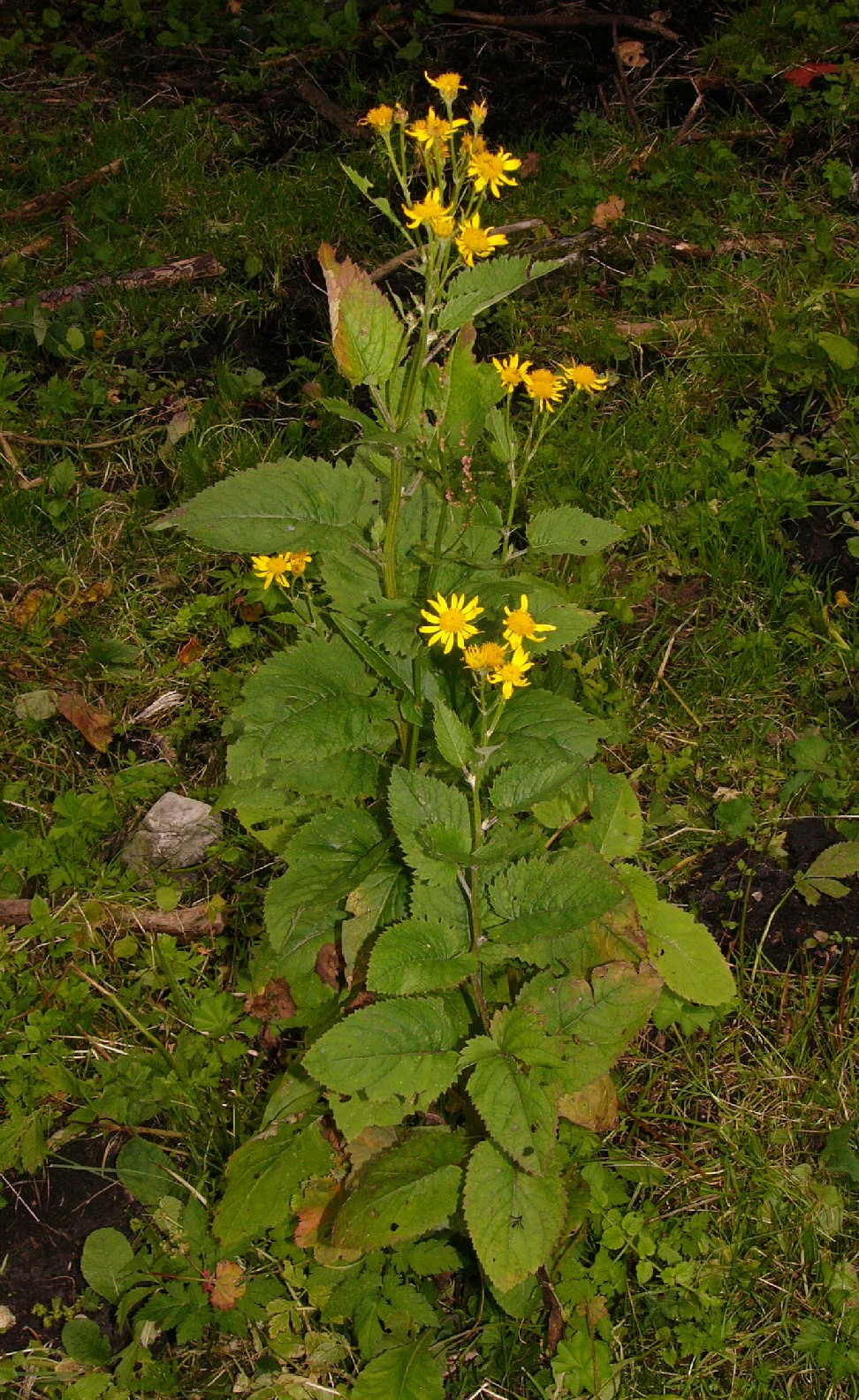 Jacobaea - Köpfchen mit gelben Röhren- und Zungenblüten, Blätter grün, ungeteilt, eiförmig
