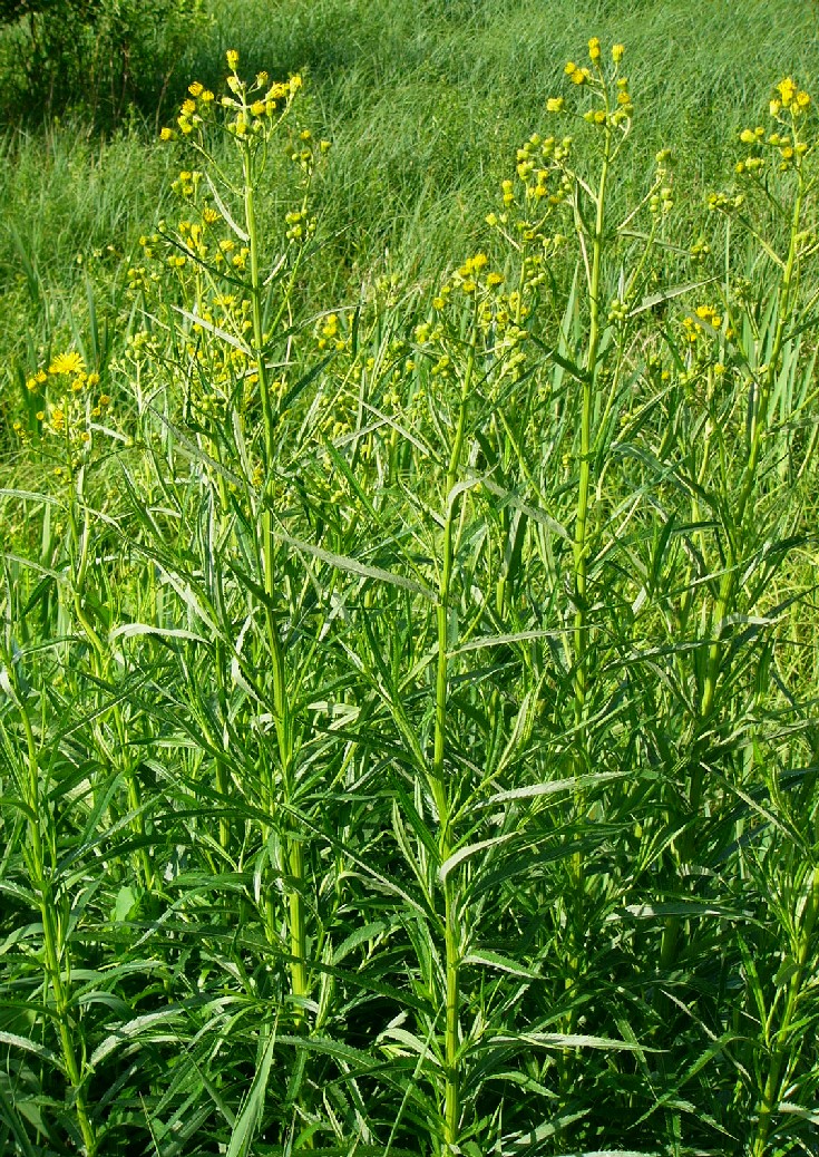 Jacobaea - Köpfchen mit gelben Röhren- und Zungenblüten, Blätter grün, ungeteilt, linealisch, scharf gezähnt