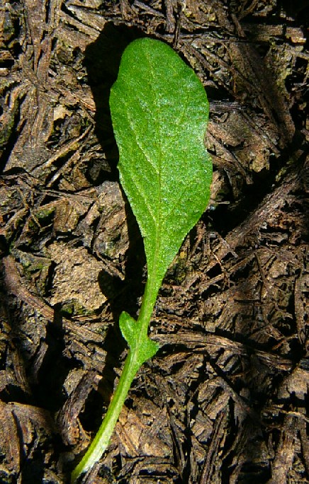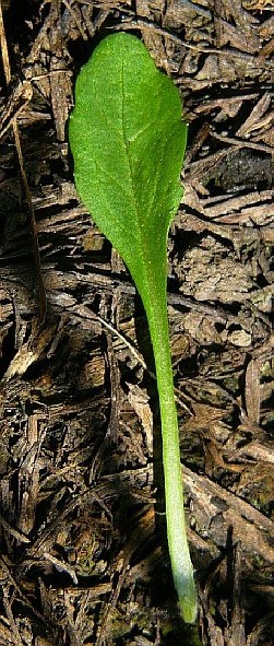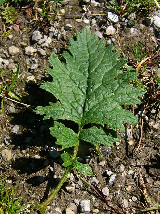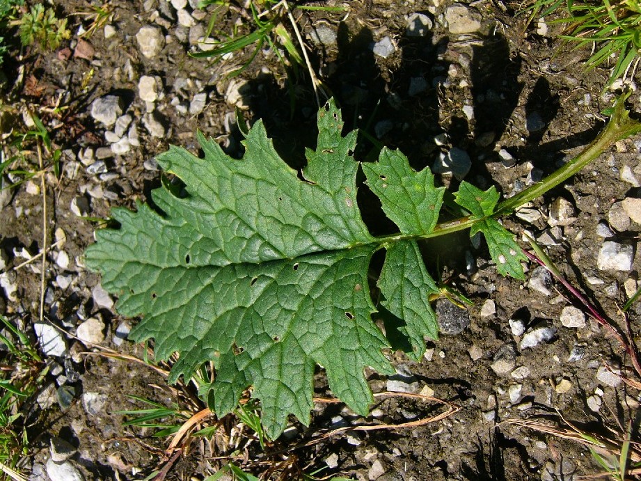 Grundblätter 3 - 7 cm lang, 2 - 3 cm breit, eiförmig, +/- ganzrandig oder gelappt,