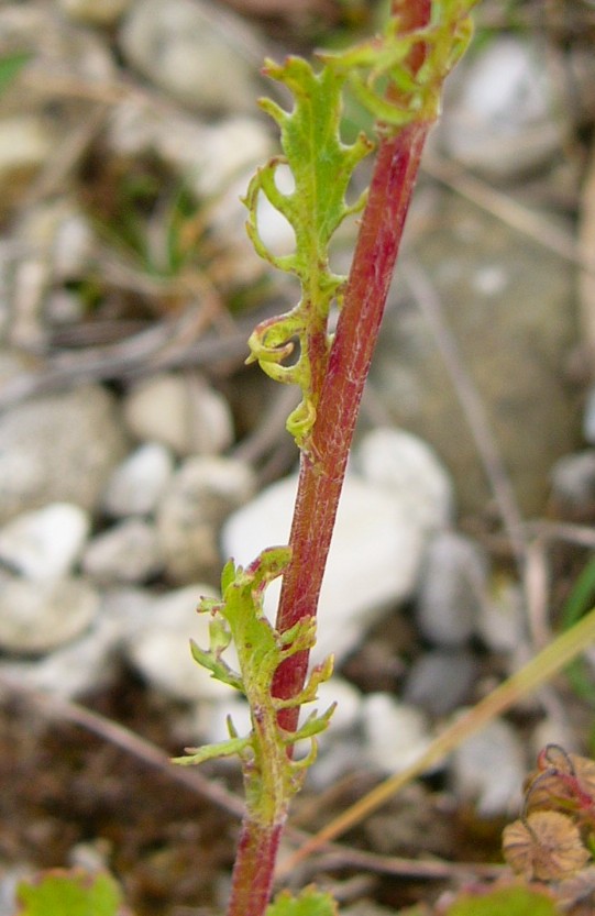 Mittlere Stängelblätter mit länglichem Endabschnitt und meist 3 - 4 Paaren linealischen, nach vorne gerichteten seitlichen Abschnitten
