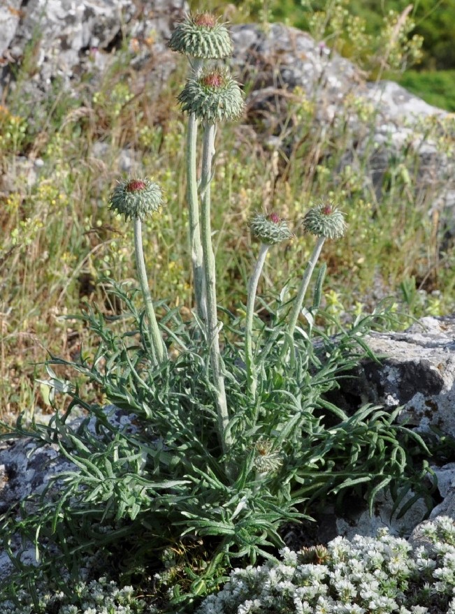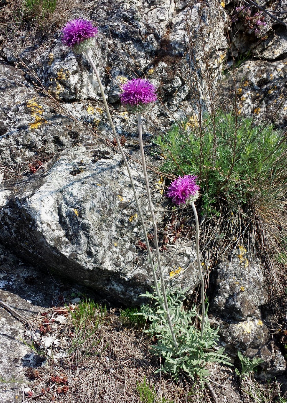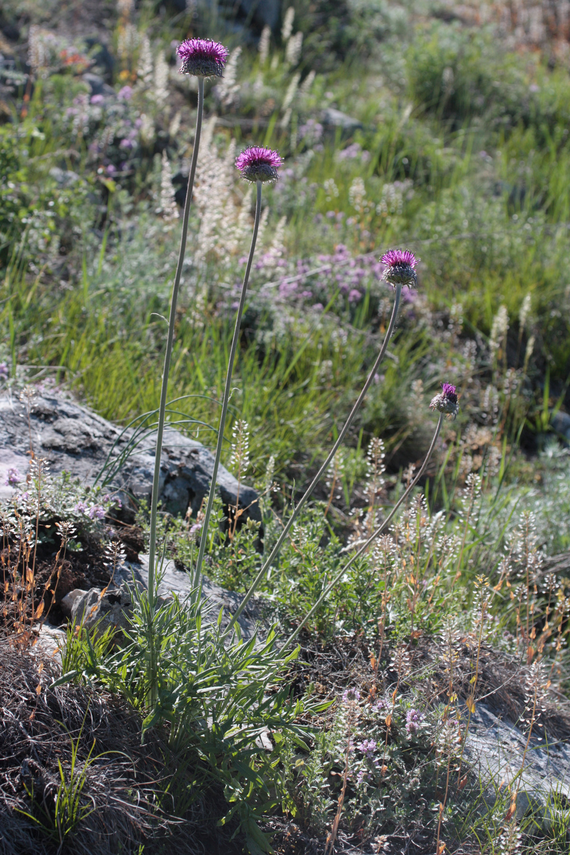 Jurinea - Pflanze mit langem Stängel, Hüllblätter abstehend oder zurückgebogen, Köpfchen halbkugelig
